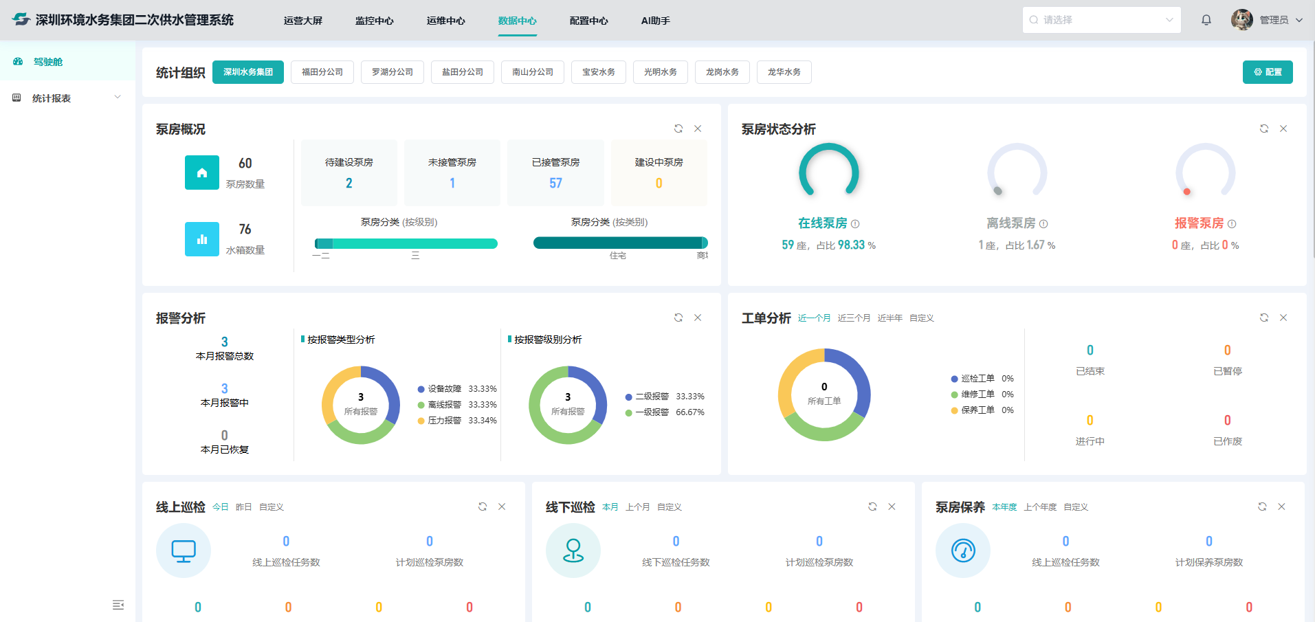 构建区别于传统SCADA+平台建设模式的全新二次供水管理系统,实现对区域泵房运行状态、关键指标等一目了然、一触即达,线上巡检安防联动,并实现对泵房设备的全生命周期管理。同时,全面规划深圳市《二供管理标准体系》,提供从二供泵房智慧化改造到监管再到运维的二供全流程智慧运营服务。