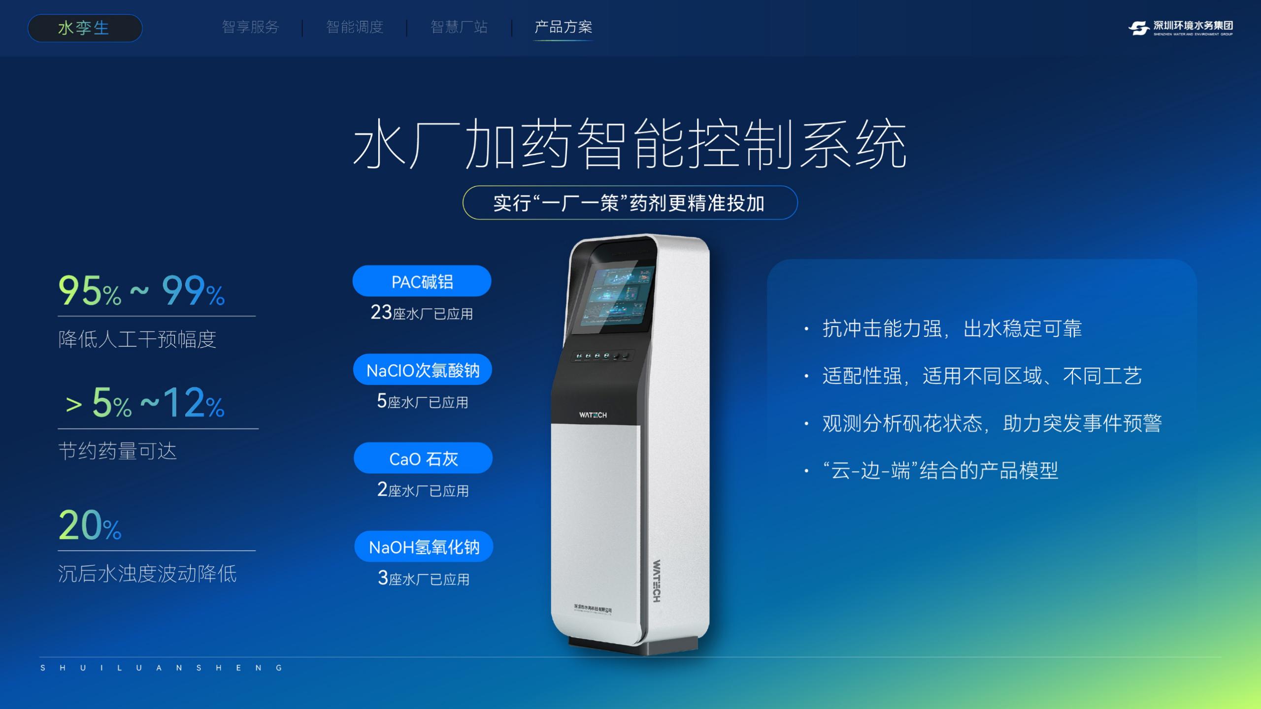 目前已在深圳建成26座智慧水厂,12座智慧水质净化厂,2座工业废水净化厂,100余座泵站,助力厂站实现少人值守、智慧运营。